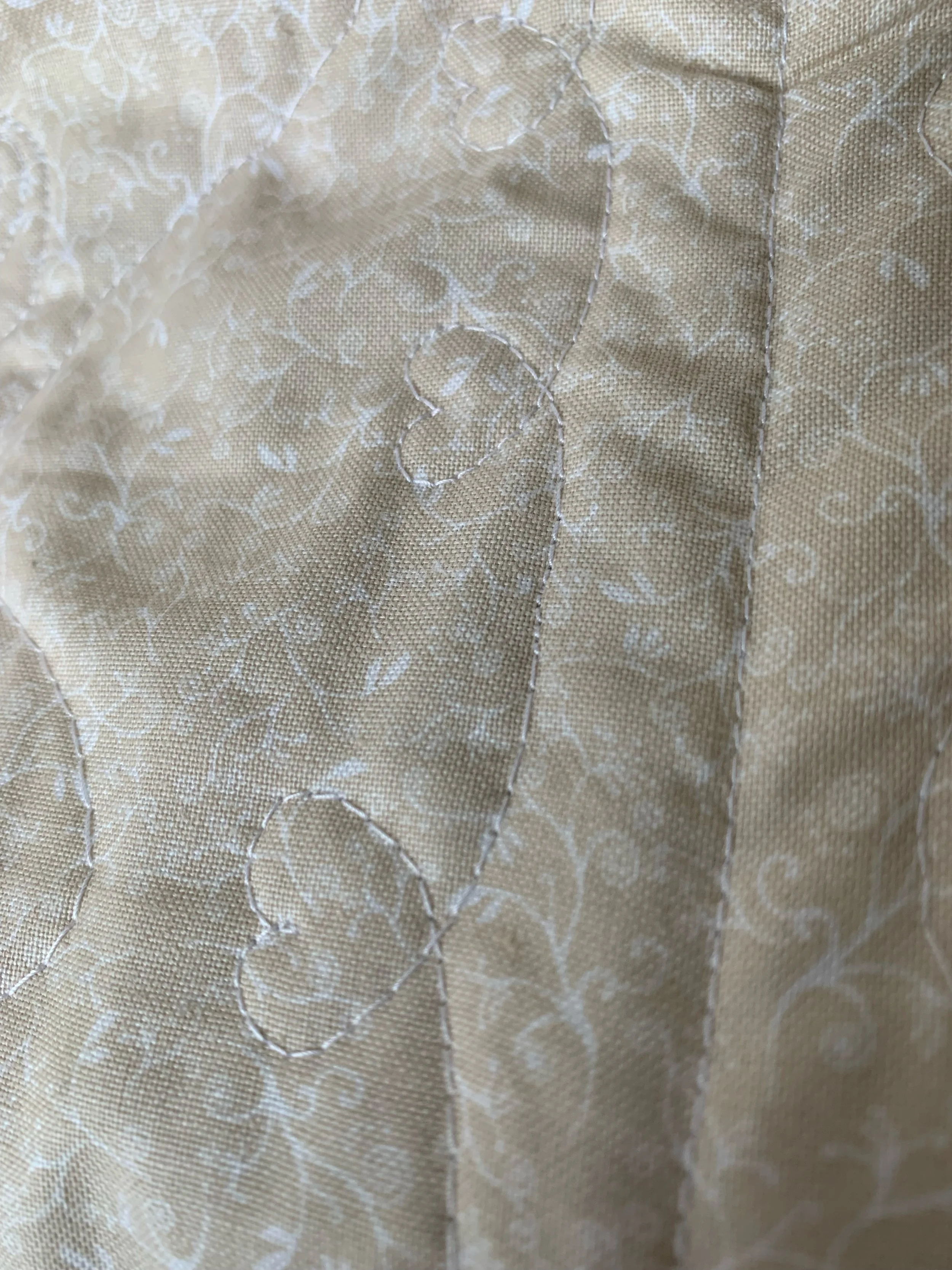 Example: 60 by 70-inch quilt is 4200 sq inches = $84 for the quilting alone